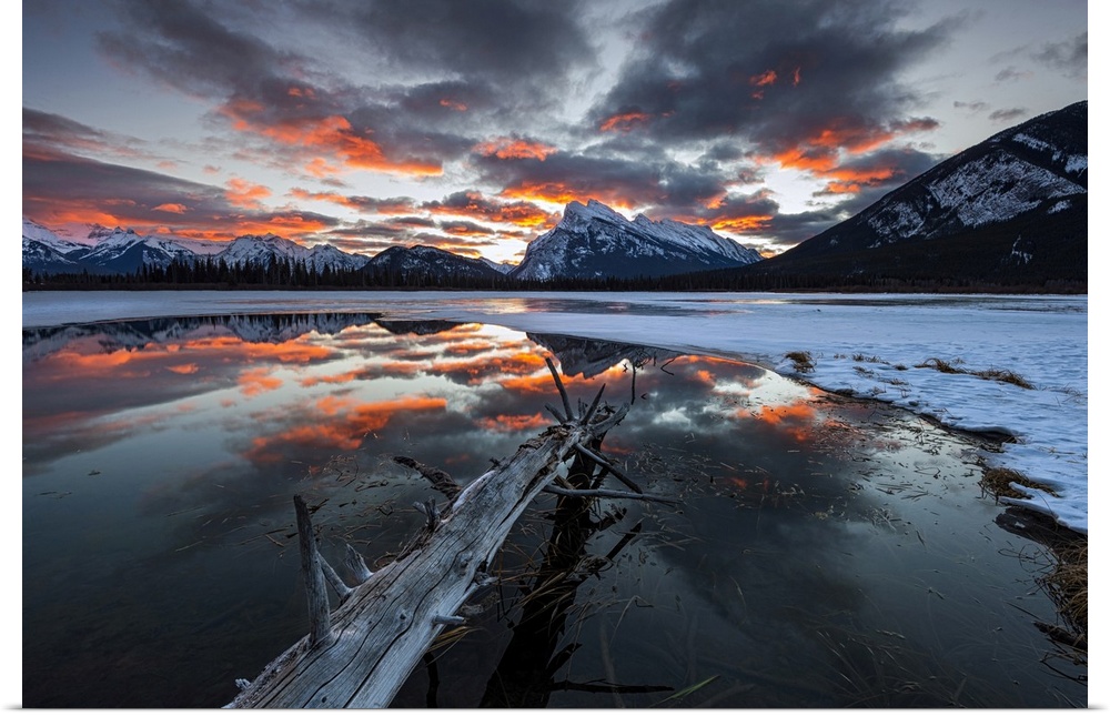 <p>Stunning sunrise at Vermillion Lakes backed by Mt. Rundle in Banff National Park.</p>