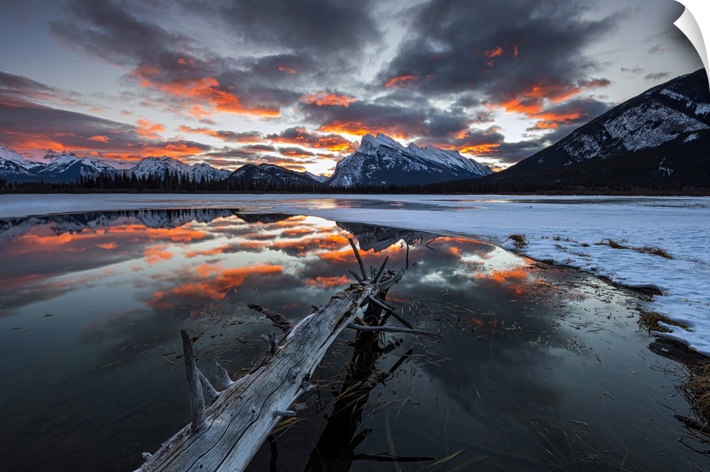 <p>Stunning sunrise at Vermillion Lakes backed by Mt. Rundle in Banff National Park.</p>