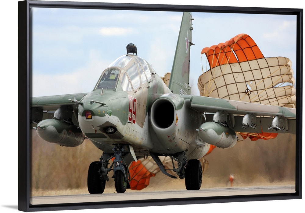 <p>Su-25 attack airplane of Russian Air Force taxiing after landing.</p>