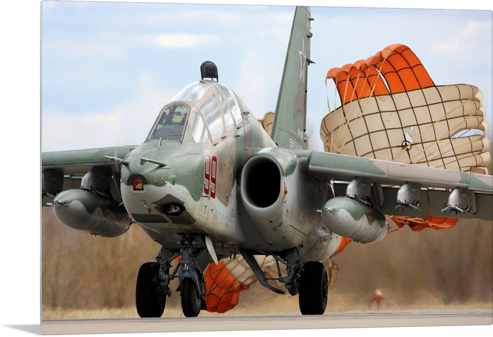 <p>Su-25 attack airplane of Russian Air Force taxiing after landing.</p>