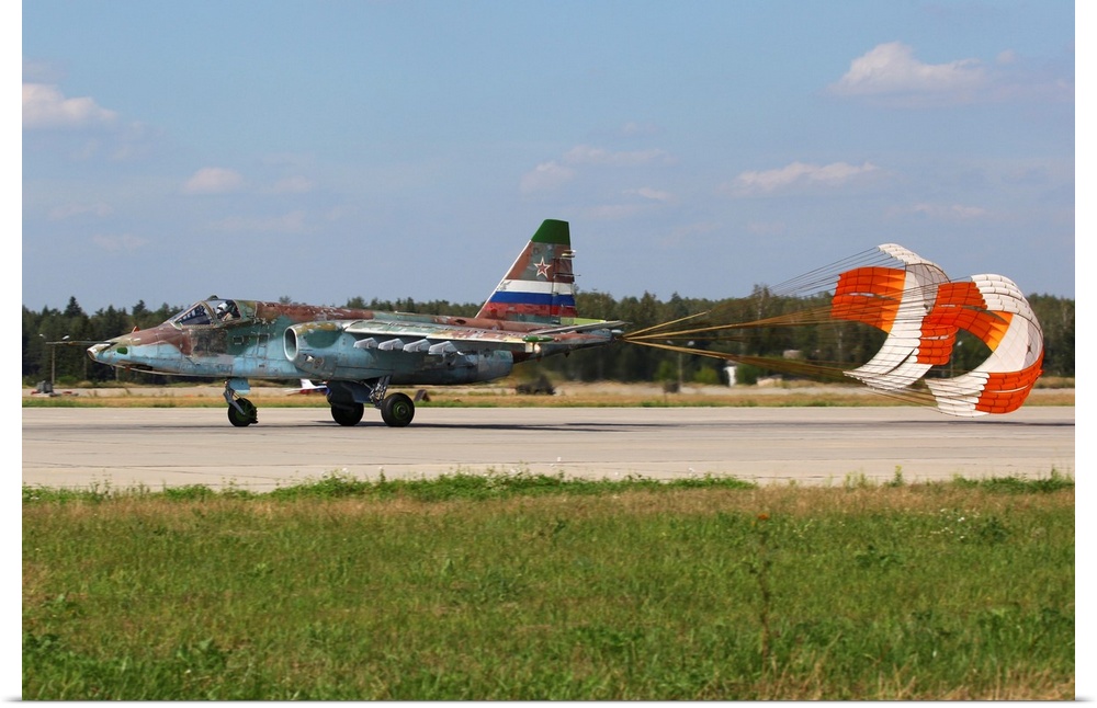 <p>Su-25SM attack airplane of Russian Air Force landing, Kubinka, Russia.</p>