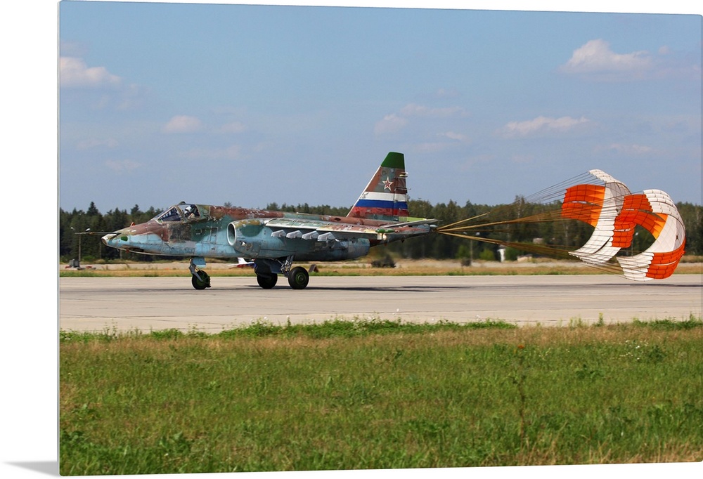 <p>Su-25SM attack airplane of Russian Air Force landing, Kubinka, Russia.</p>