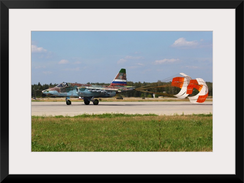 <p>Su-25SM attack airplane of Russian Air Force landing, Kubinka, Russia.</p>
