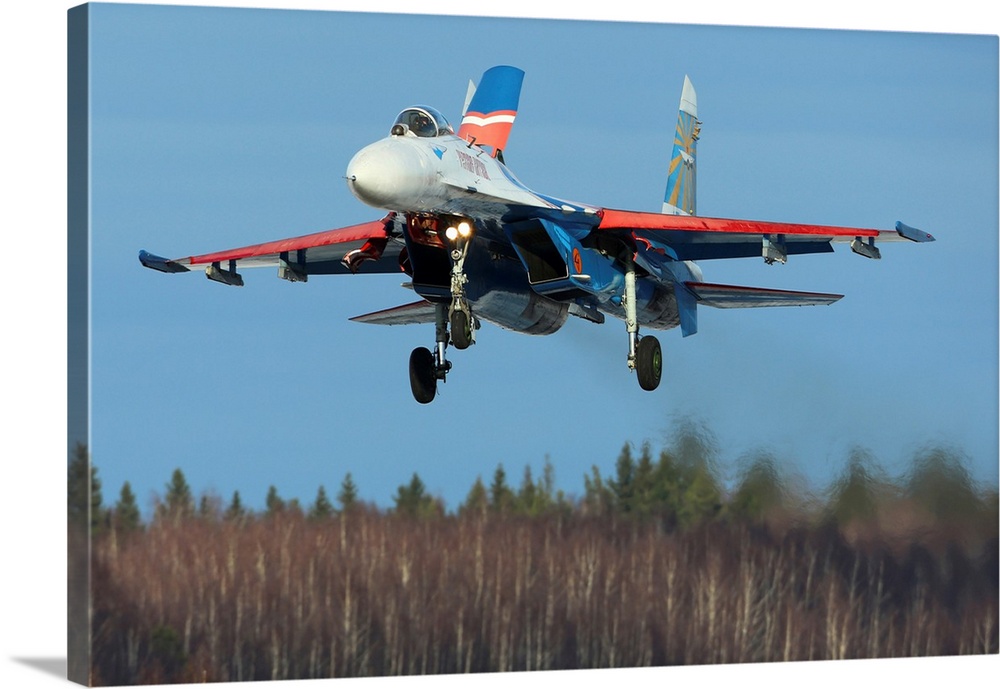 <p>Su-27 jet fighter of Russian Knights aerobatics team landing, Kubinka, Russia.</p>