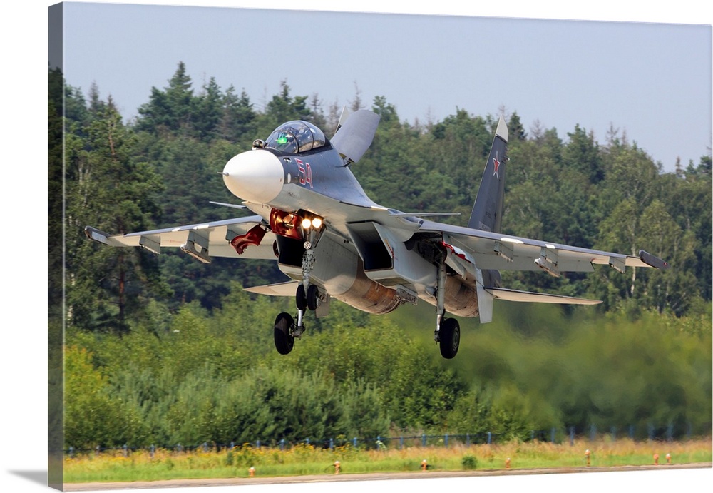 <p>Su-30SM jet fighter of Russian Air Force landing, Kubinka, Russia.</p>