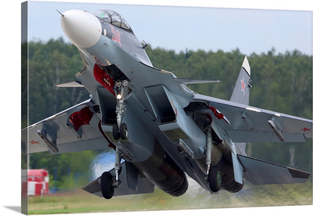 <p>Su-30SM jet fighter of Russian Air Force taking off, Kubinka, Russia.</p>