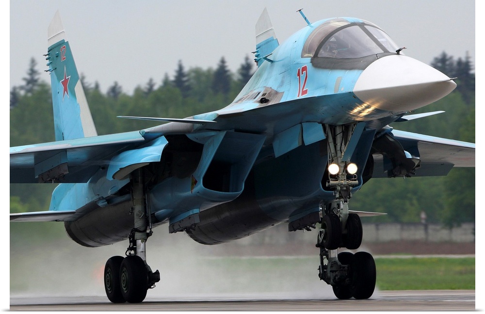 <p>Su-34 attack airplane of Russian Air Force landing, Kubinka, Russia.</p>