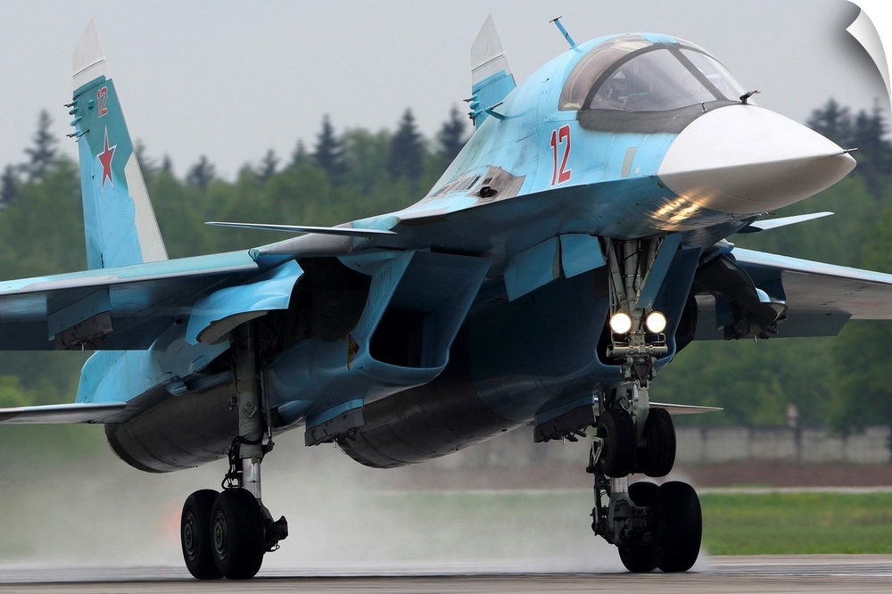 <p>Su-34 attack airplane of Russian Air Force landing, Kubinka, Russia.</p>