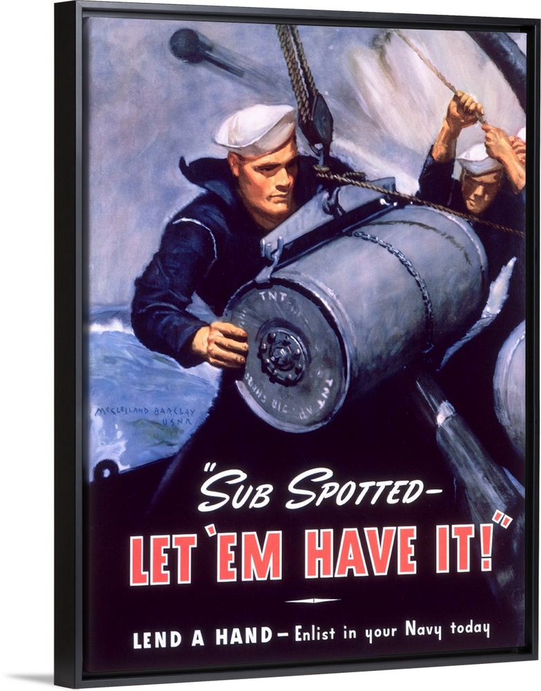 <p>ca. 1942 - "Sub Spotted - Let 'Em Have It!" U.S. Navy Recruitment Poster by McClelland Barclay - Image by K.J. Historical/CORBIS</p>