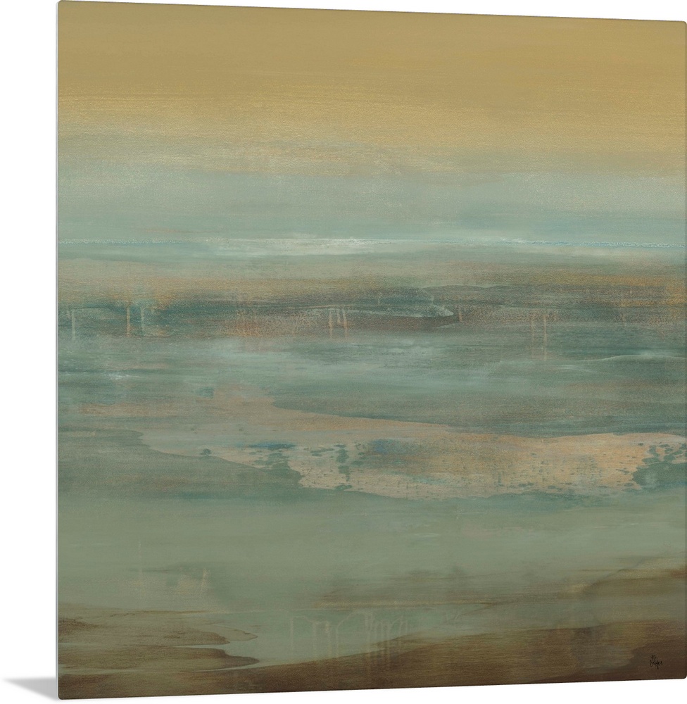 <p>Abstract painting in subdue, muted tones of brown and blue.</p>