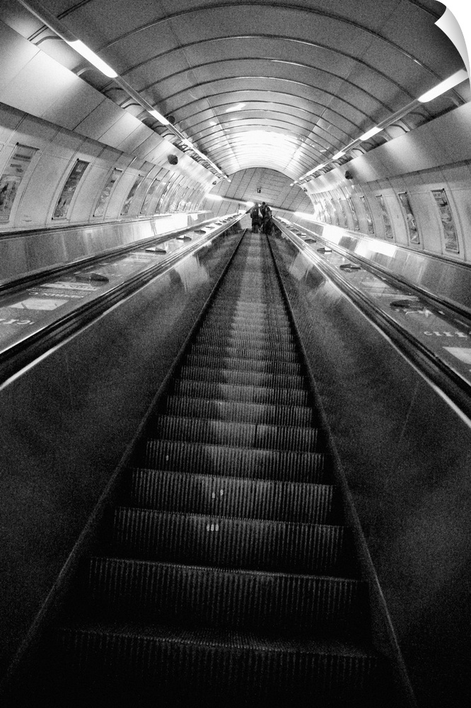 <p>People at the end of the escalator in an underground station</p>