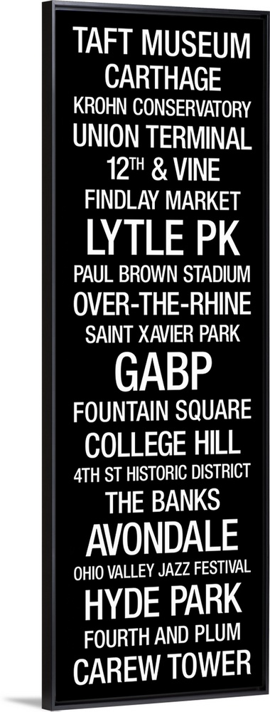 <p>Typographic artwork showcasing some beloved city landmarks on a narrow, vertical wall art.</p>