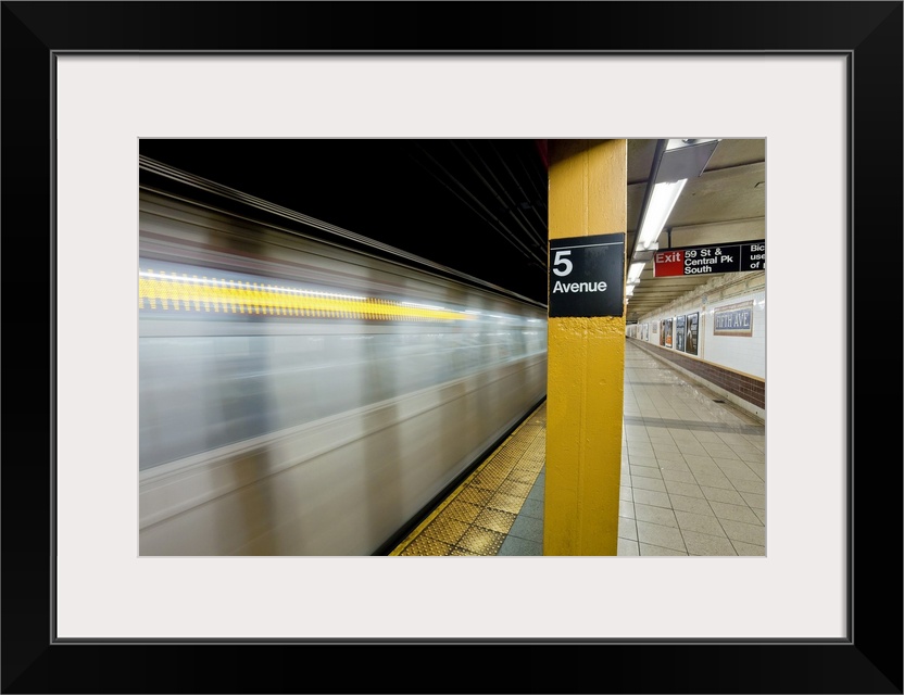 <p>Subway station and train in motion, Manhattan, New York City, New York, United States of America, North America</p>