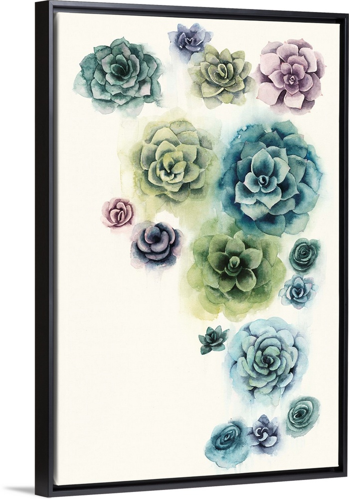 <p>Contemporary artwork of a grouping of succulent plants using a monochromatic color scheme.</p>