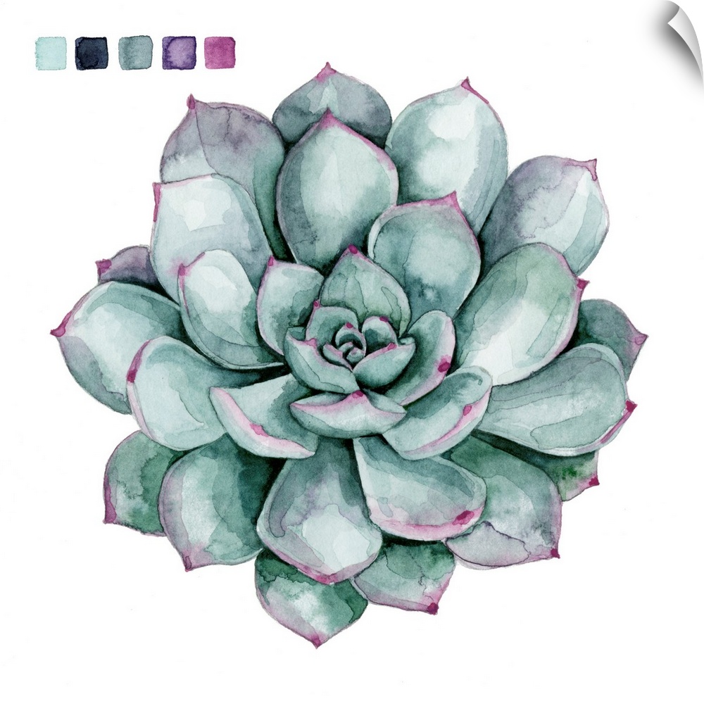 <p>Artwork of a succulent plant with color swatches in the corner.</p>