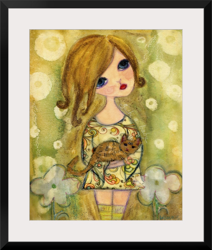 Art Wyanne Art Decorative Art Green Wall Art Painting People Figurative Watercolor Wildlife Cat