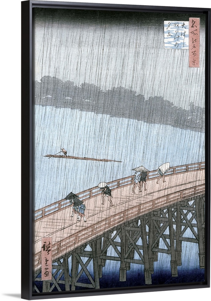 Bridge Art Asian Art Figurative Rivers and Oceans Blue Wall Art Classic Art Rivers, Lakes and Oceans Utagawa Hiroshige Landscapes Seascapes Painting People