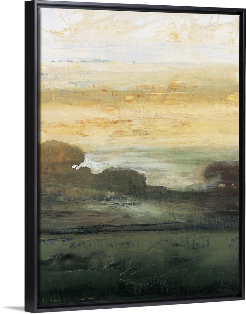 <p>Contemporary abstract painting resembling a foggy landscape with a line of trees in the distance.</p>