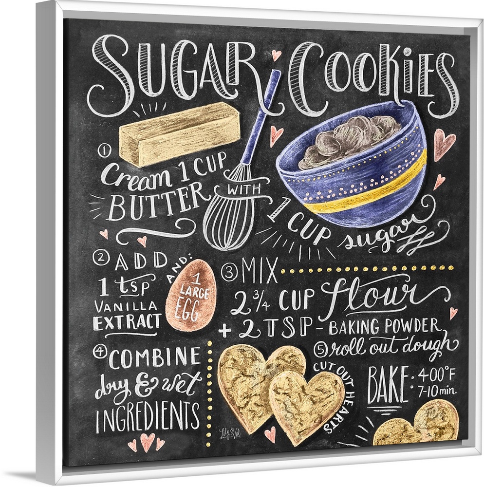 Art Kitchen Wall Art Chalkboard Art Drawing Food and Drink Food Dessert Cookies Illustrated Recipes Typography & Calligraphy Lily and Val