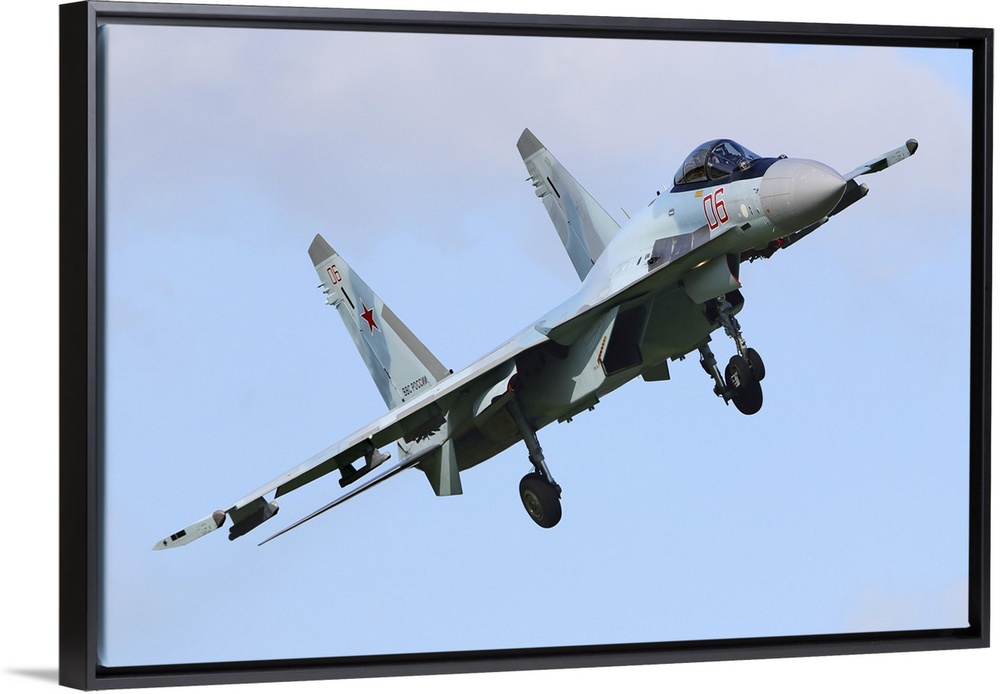 <p>Sukhoi Su-35S jet fighter of the Russian Air Force landing, Kubinka, Moscow Region, Russia.</p>