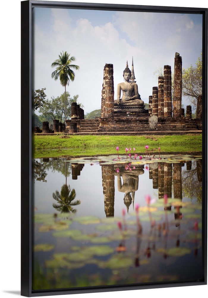 <p>Buddha statue reflection in water at Sukhothai, Thailand.</p>