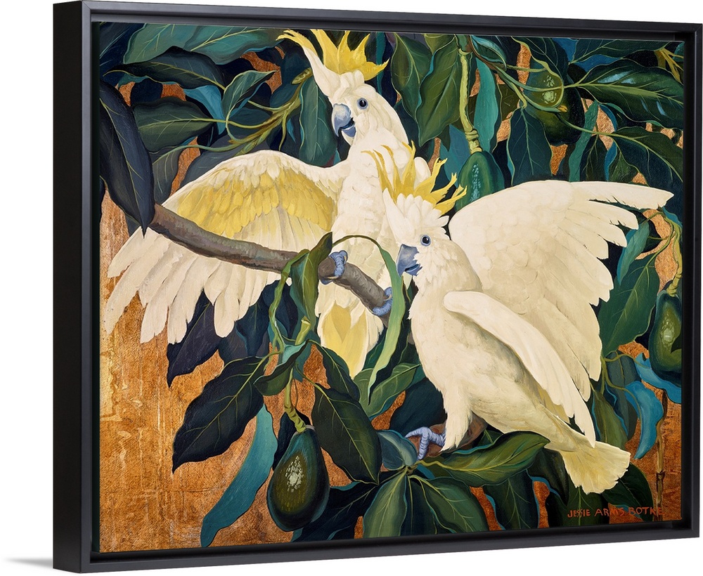<p>Jessie Hazel Arms Botke (1883 – 1971) was an American female artist who holds a high place in the California School of Impressionism. She became known for her exotic, highly decorated bird studies — most often, they are pictures of birds, a large variety including white peacocks, blue peacocks, cockatoos, ducks, swans, geese, pheasants, and toucans, among others. The birds are shown in natural settings accompanied by carefully painted flora, her paintings are richly adorned with an abundance of detail. She was a member of the California Art Club, the California Watercolor Society, and the Foundation of Western Art. She won numerous prizes including high distinction from the Chicago Art Institute.</p>