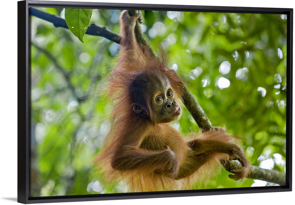<p>Sumatran OrangutanPongo abelii9 month old baby playing in treeNorth Sumatra, Indonesia*Critically Endangered</p>