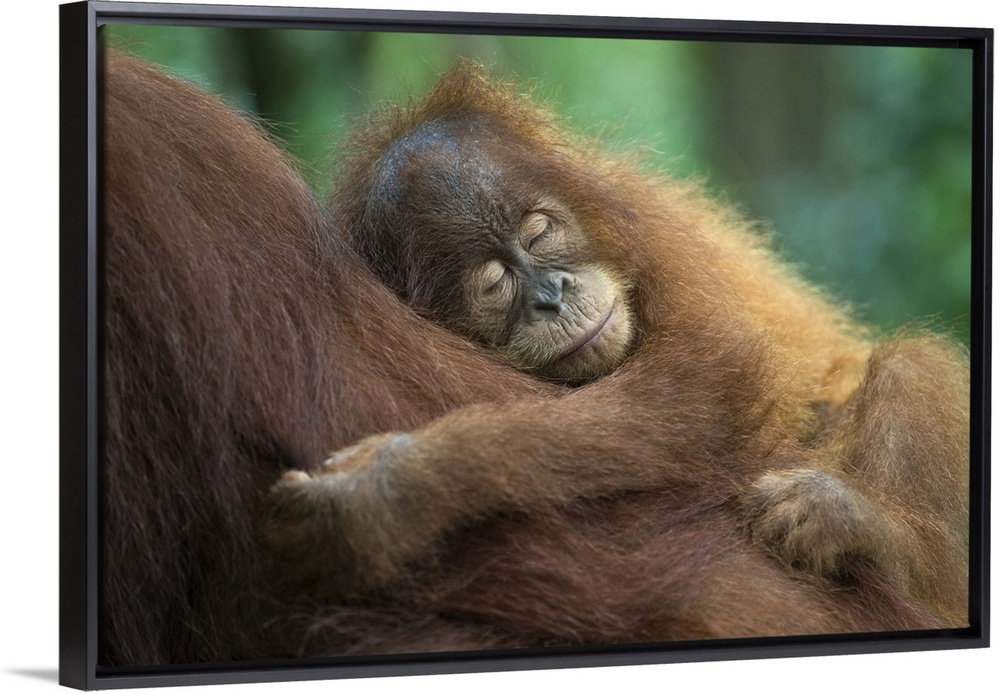 <p>Sumatran OrangutanPongo abelii2.5 year old baby sleeping on motherNorth Sumatra, Indonesia*Critically Endangered</p>