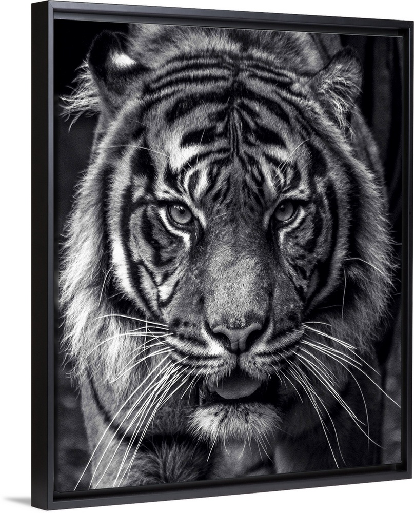 <p>Black and white portrait of a large Sumatran Tiger.</p>