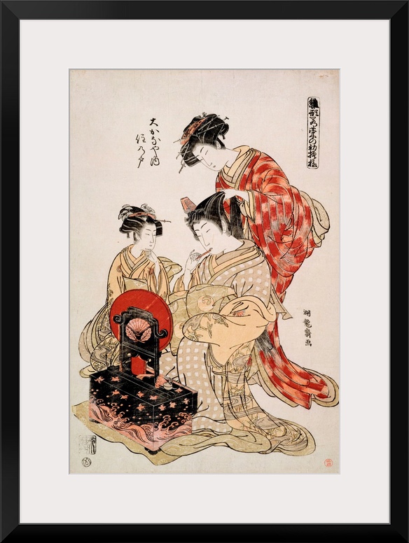 <p>Suminoto of Okanaya, from the series 'New Kimono Patterns for Young Leaves', c.1779 (woodblock print) by Koryusai, Isoda (1735-90) British Federation of Master Printers, UK; Japanese</p>
