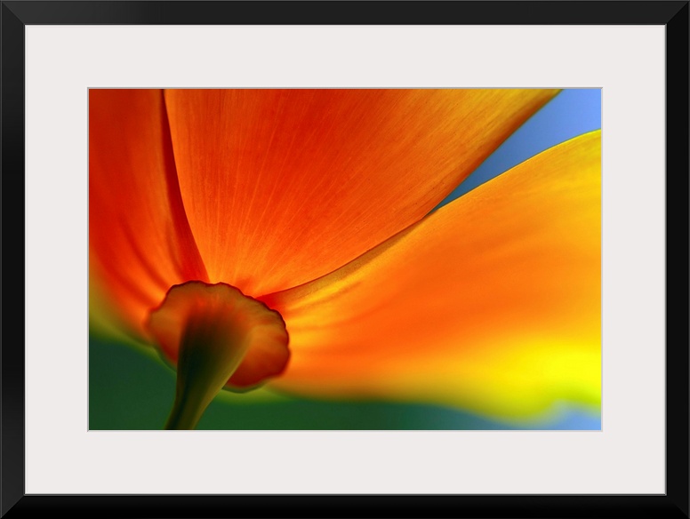 <p>A close up photograph of a flower blossom taken from below and behind near the stem in this floral wall art for the home or office.</p>