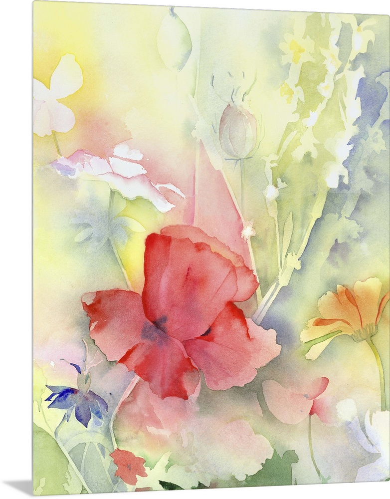 <p>Contemporary watercolor painting of vibrant colorful flowers.</p>