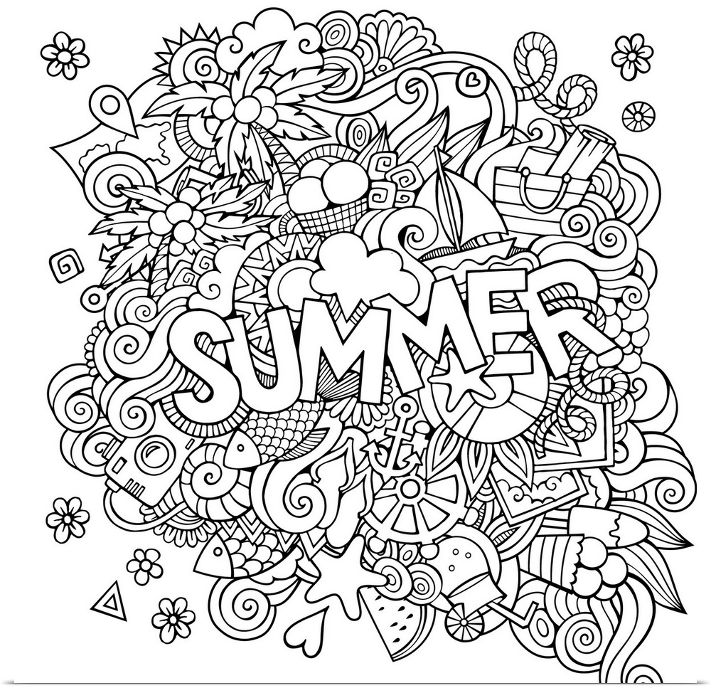 <p>A collection of summer and beach-themed items, including boats, palm trees, and photographs. Perfect for Coloring Canvas.</p>