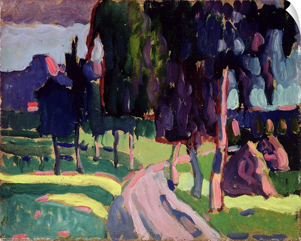 <p>Summer at Murnau, 1908 (originally oil on board) by Kandinsky, Wassily (1866-1944)</p>