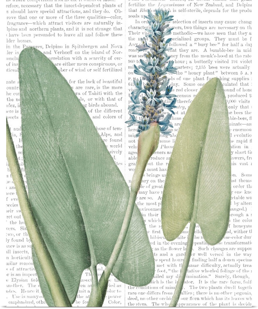 <p>Mixed media art with a botanical illustration in the foreground and text from a botany book in the background.</p>