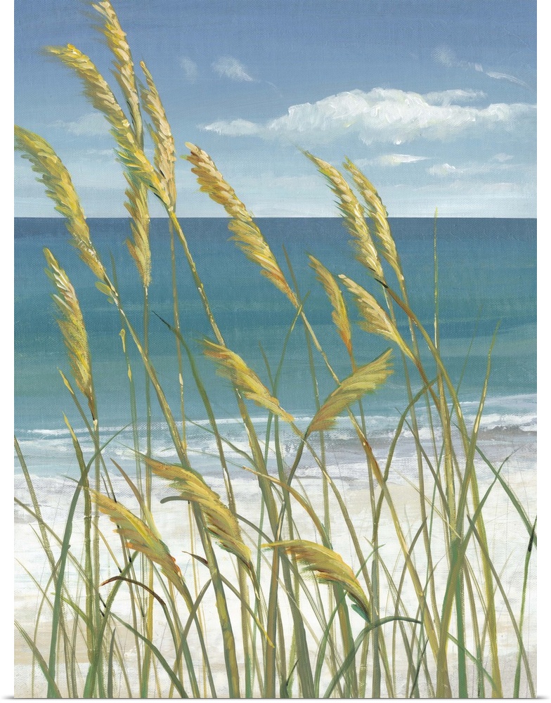 <p>Contemporary painting of beach grasses swaying in the wind.</p>