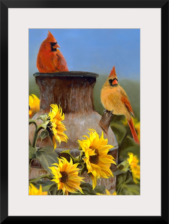 Art Traditional Decorative Art Florals Sunflower Painting Bird Cardinal Garden Birds Victoria Wilson Schultz
