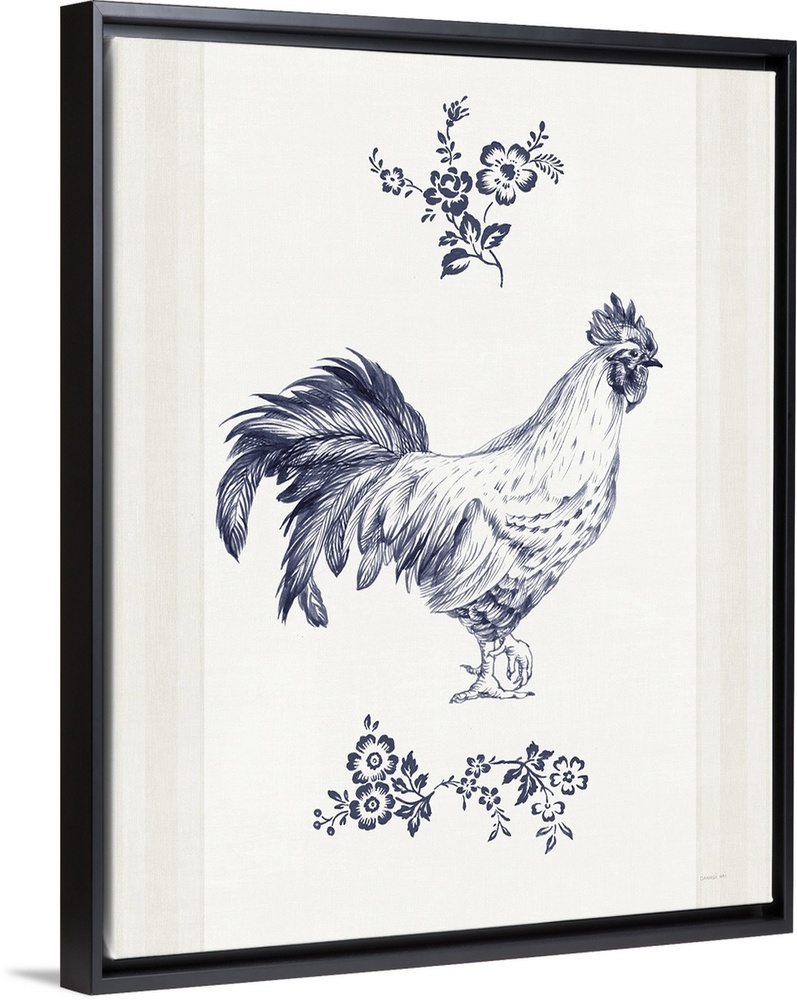 Art Traditional Blue Wall Art Decorative Art Florals Danhui Nai Painting Wildlife Bird Chicken