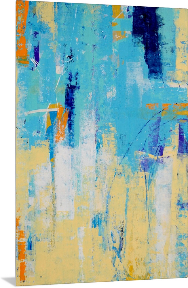 <p>A contemporary abstract painting using light blue and a pale yellow merging together.</p>