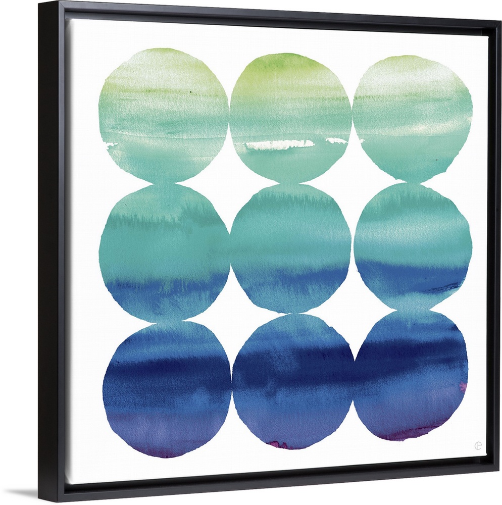 <p>Nine watercolor circles in blue and green tones.</p>