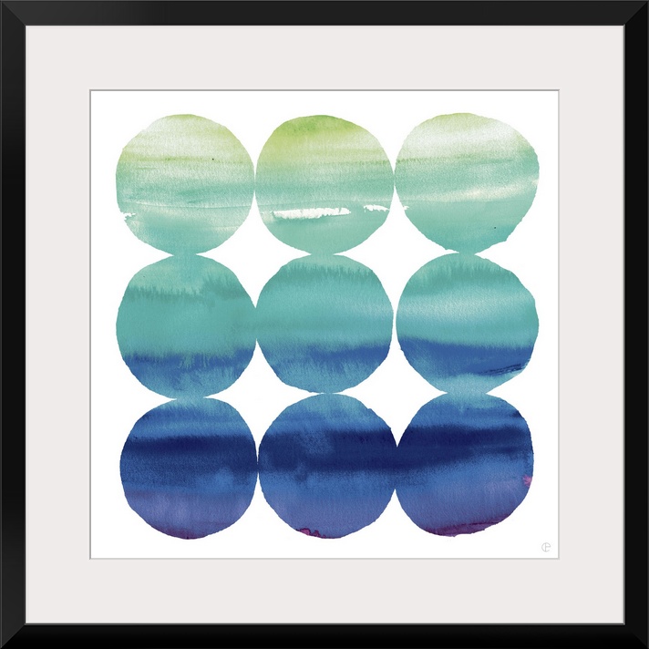 <p>Nine watercolor circles in blue and green tones.</p>