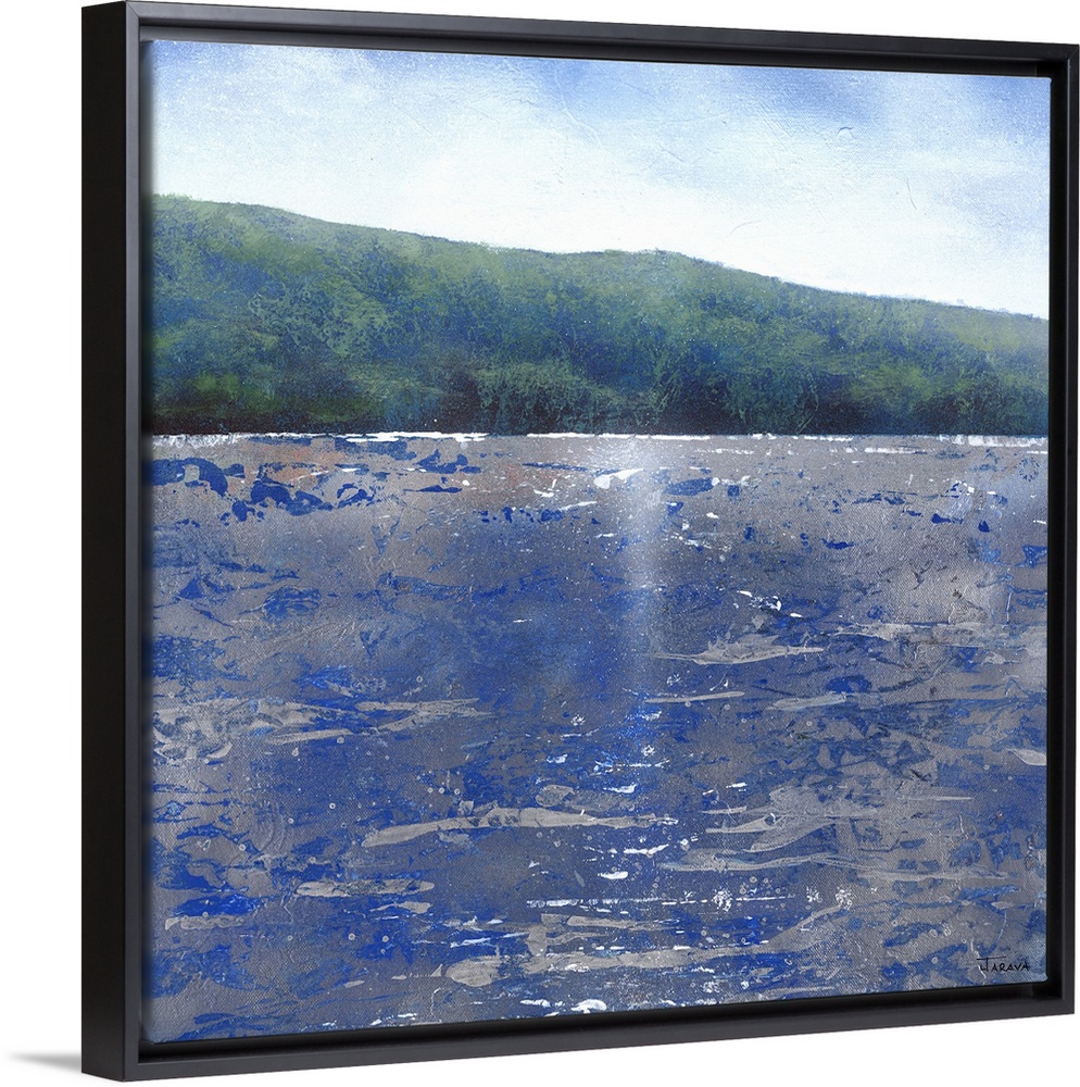 <p>Square contemporary abstract painting of Lake Tahoe.</p>