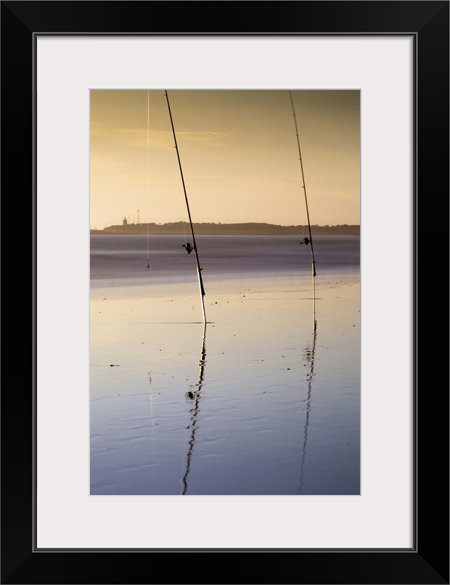 <p>Two fishing rods on the beach. Long exposure shot.</p>
