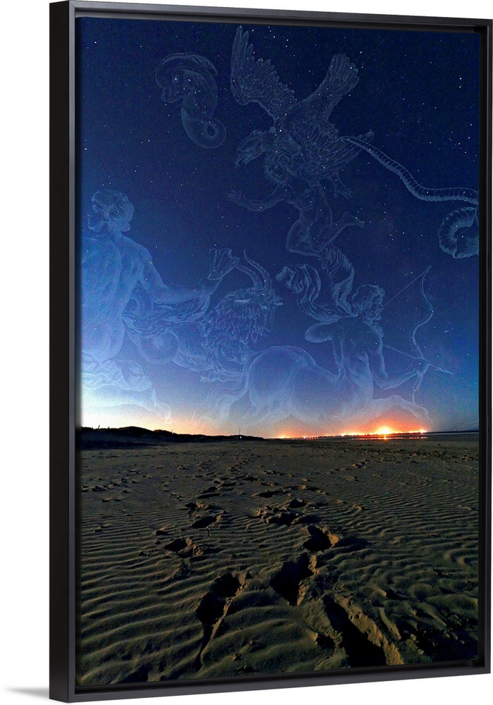 <p>Summer night sky over a beach. Among the constellations seen here are Scorpius, Sagittarius, Capricorn, Aquarius, Delphinus, Aquila and Serpens. Photographed in Brittany, France.</p>