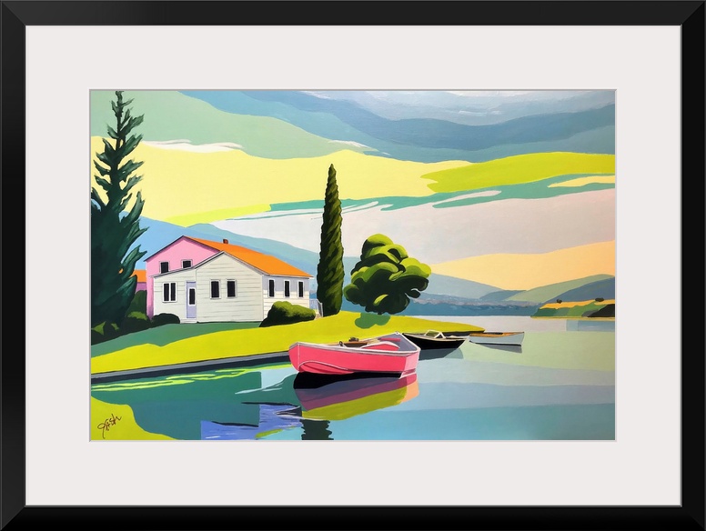Houses Art Contemporary Art John Jaster Landscapes Lake Painting Transportation Boat Rowboat