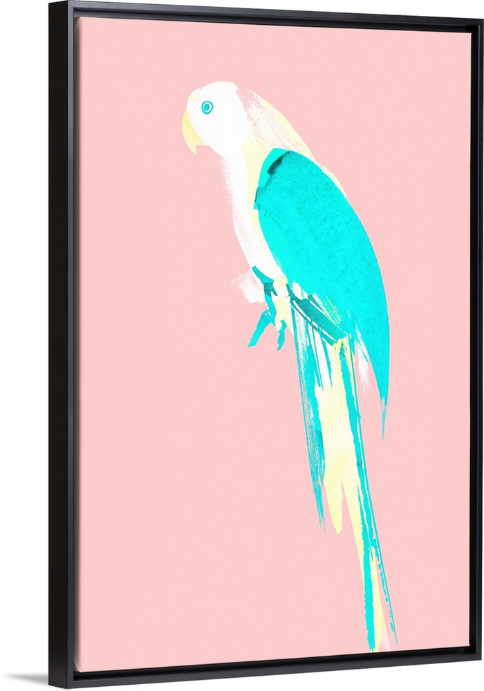 <p>Pop art of a pastel-colored parrot on a light pink background.</p>