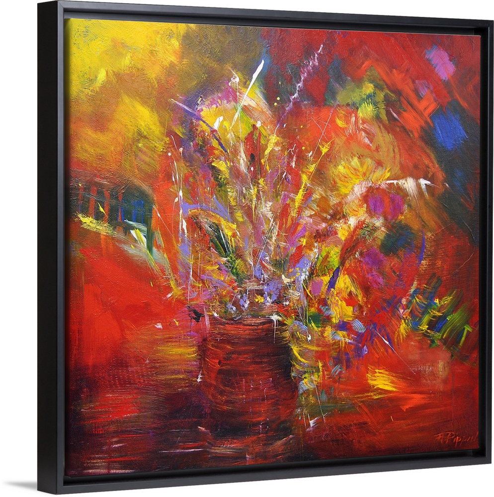 <p>Contemporary abstract painting using wild and vibrant splashes of color.</p>