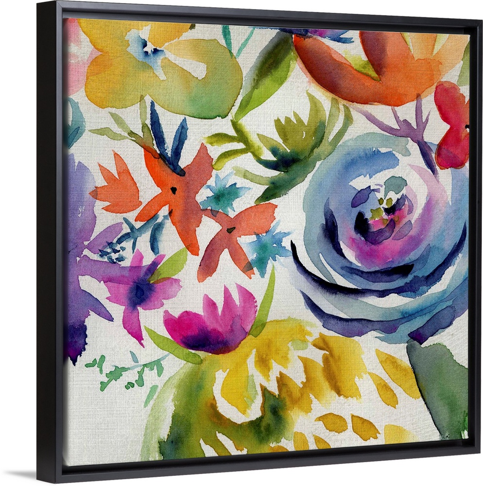 <p>Vibrant Summer flowers painted on a white square background.</p>
