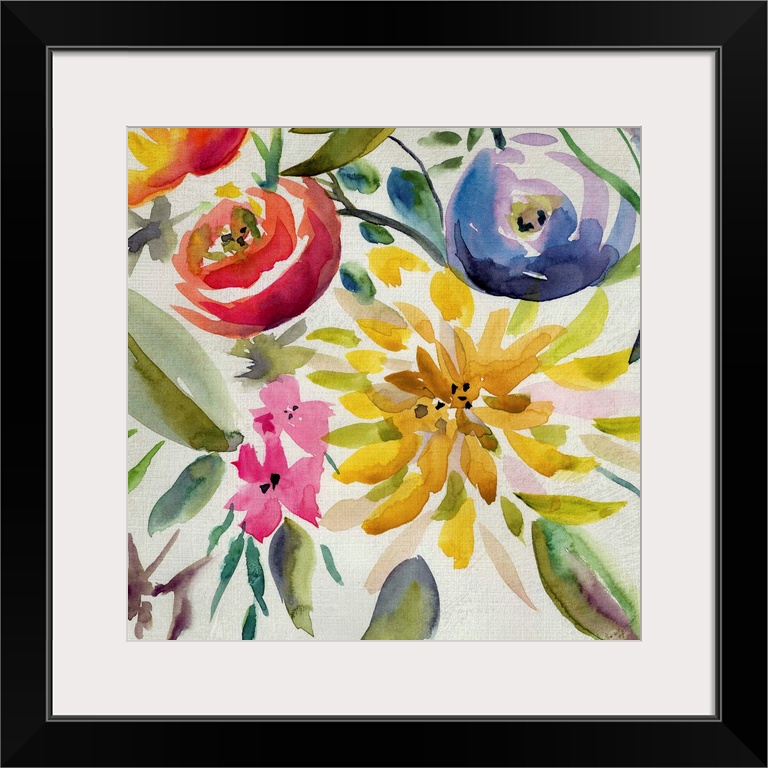 <p>Vibrant Summer flowers painted on a white square background.</p>