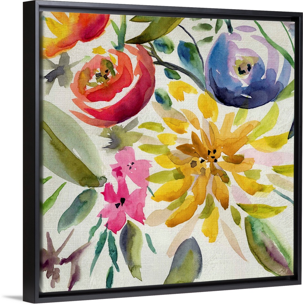 <p>Vibrant Summer flowers painted on a white square background.</p>